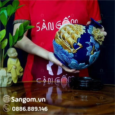 Không giống với các sản phẩm thông thường là in hoặc vẽ trên bề mặt. Sản phẩm được các nghệ nhân chăm chút tỉ mỉ với hoạ tiết thuận buồm xuôi gió đắp nổi đặc sắc.