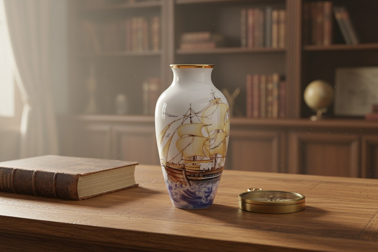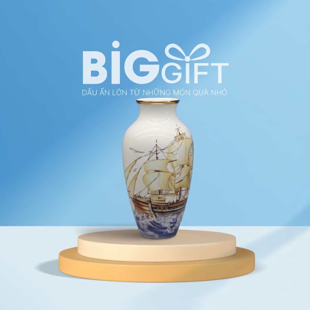 Mang tinh thần phiêu lưu và vẻ đẹp đại dương vào ngôi nhà bạn với Bình Sứ Thanh Lịch Đại Hải Trình. Sản phẩm gốm Bát Tràng cao cấp, họa tiết thuyền buồm vẽ tay tinh xảo và viền mạ vàng, là điểm nhấn thanh lịch và đầy ý nghĩa cho mọi không gian sống. Sở hữu ngay để cảm nhận sự tinh tế và bền vững.