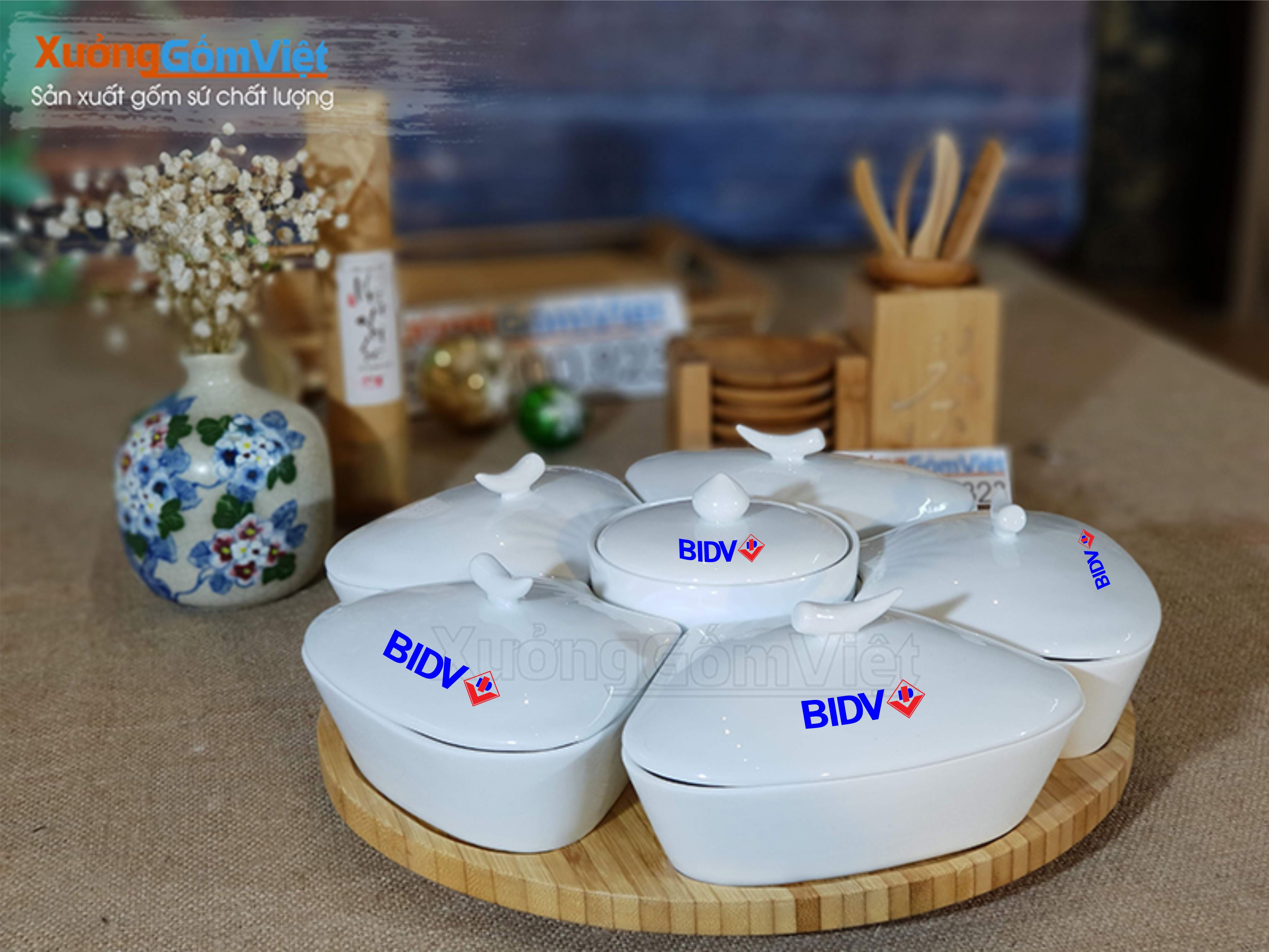 Sàn Gốm Bát Tràng là đơn vị sản xuất và cung cấp khay mứt in logo số lượng lớn, sắc nét, bền màu với mức chiết khấu hấp dẫn.