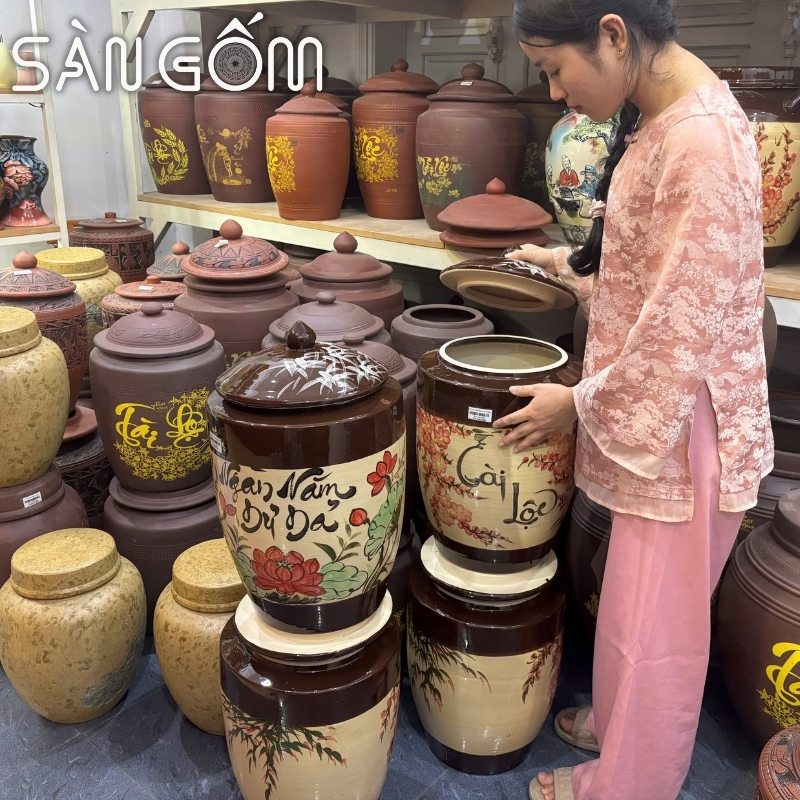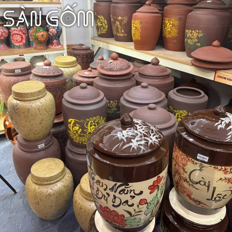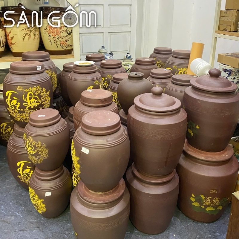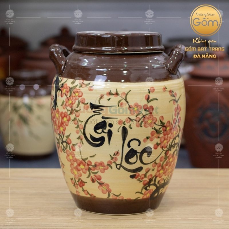 Hũ đựng gạo gốm sứ không tráng men Bát Tràng
