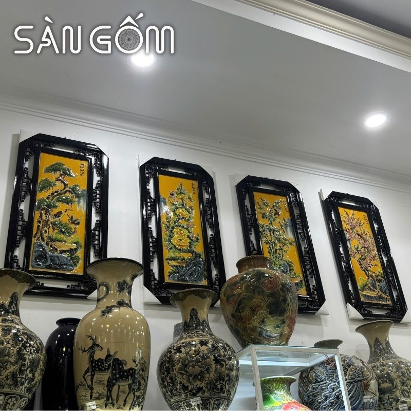 Một bức tranh gốm sứ đẹp treo trong phòng khách, bộ tranh tứ quý tùng cúc trúc mai, bộ tranh chữ thư pháp, tranh gốm dân gian… đều có nhiều kiểu dáng và họa tiết phù hợp từng người khác nhau.