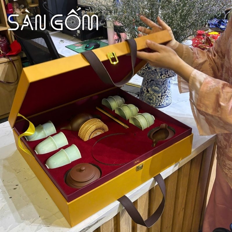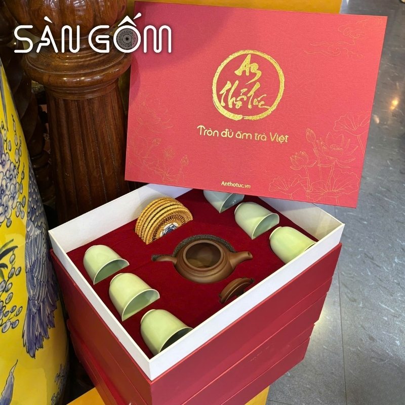 Không quá cầu kỳ, bộ ấm chén thể hiện tấm lòng của người tặng, cùng với lời chúc may mắn cho gia chủ là đã là món quà ý nghĩa đối với họ trong dịp tân gia rồi.