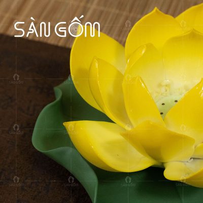 Hoa sen sứ thả bát nước tụ lộc màu vàng SG-HSS03