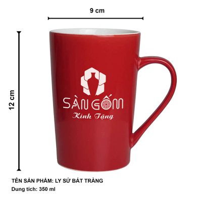 Ly sứ Bát Tràng dáng chữ V cao màu đỏ SG-LS93 có quai cầm tiện lợi, dễ dàng cầm nắm mà không lo bị nóng hay trơn trượt. Sản phẩm luôn chiếm được cảm tình của người dùng bởi thiết kế bắt mắt, giá trị sử dụng cao.