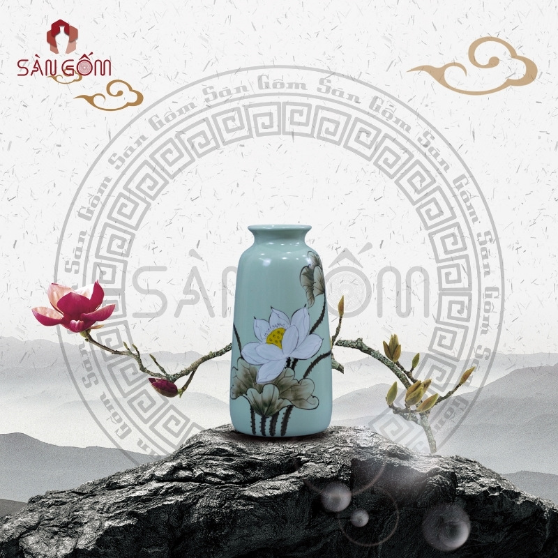 Bình hoa phong thủy vẽ sen