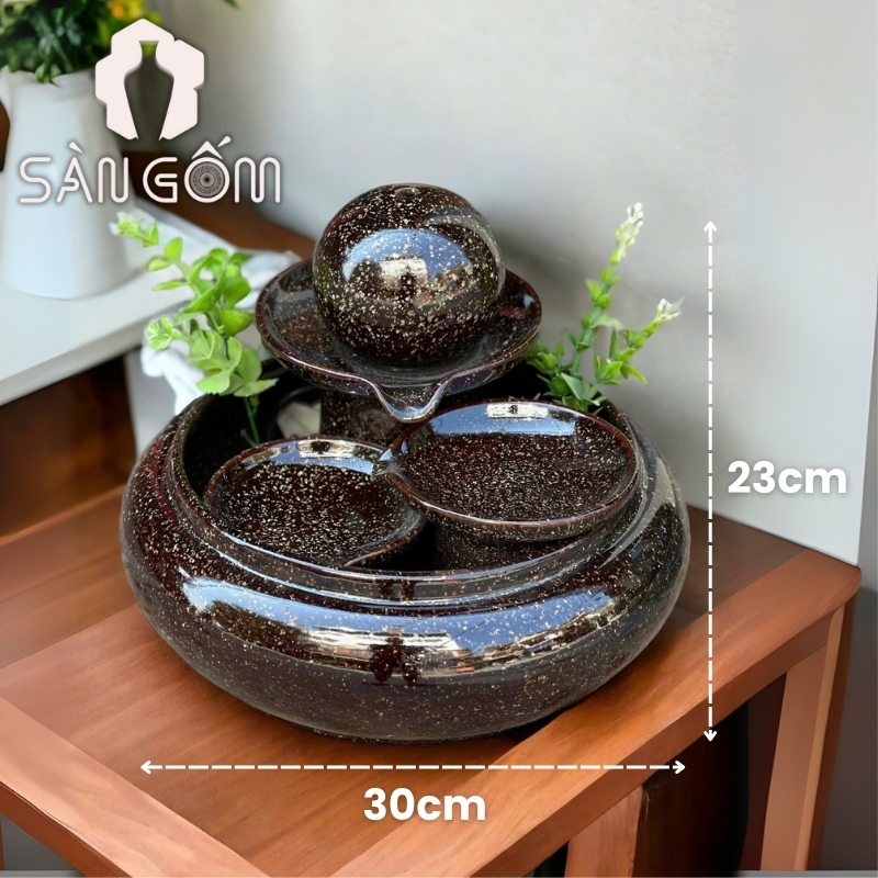 - Kích Thước Lý Tưởng: Với chiều cao 23cm và đường kính lu chậu 30cm, Bộ Thác Nước phong thủy có kích thước vừa phải, lý tưởng để đặt trên bàn làm việc, kệ sách, tủ trang trí hay bàn trà, dễ dàng hòa hợp với nhiều phong cách nội thất từ cổ điển đến hiện đại.